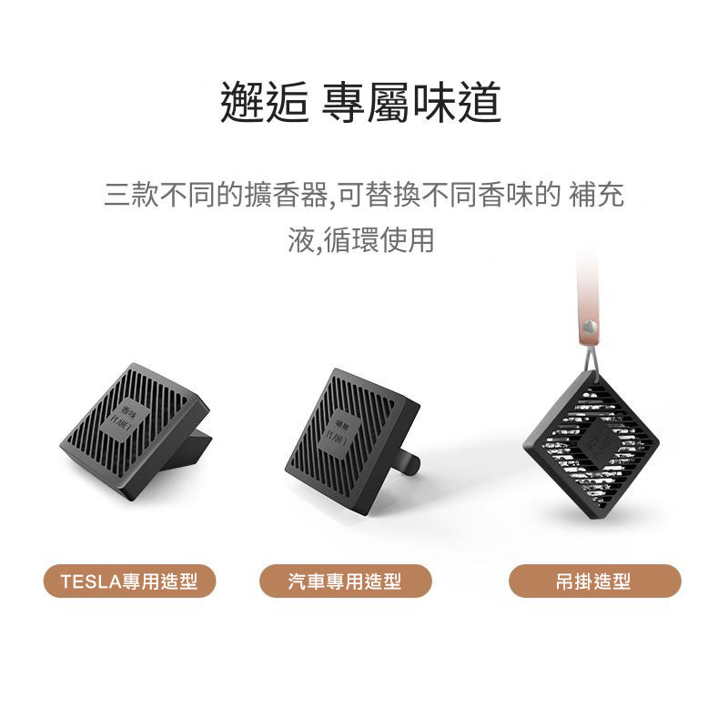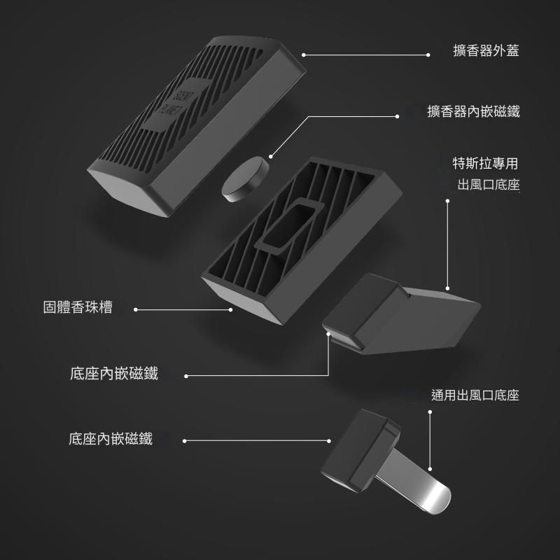1. 留香持久 無需加水/插電易於存儲,香水可以持續超過 25 天,花香,果香和甜酸。 2. 可多處放置 掛在車內或放在前後通風口,掛在車中鏡上 3.方形設計,簡約現代風格 哥倫比亞河谷 sunset valley // 清雅質感 // 前調:青草、茉莉 中調:檸檬、鈴蘭花 尾調:雪松、琥珀 雪融白茶 white tea breeze // 輕盈喚醒 // 前調:白茶、柑橘 中調:檸檬、薰衣草 尾調:茉莉、麝香 太空漿果 blossom berry // 甜美俏皮 // 前調:玫瑰、黑醋栗 中調:柑橘 尾調:松木、青草 星海假日 ocean bouquet // 蔚藍氣息 // 前調:檸檬、薰衣草 中調:海洋、木香 尾調:龍涎、鼠尾草 月夜晚香 moonlight dream // 清幽溫香 // 前調:鈴蘭、梔子花 中調:紫丁、木香 尾調:茉莉、青草 味道:哥倫比亞河谷 sunset valley / 月夜晚香 moonlight dream / 太空漿果 blossom berry / 星海假日 ocean bouquet / 雪融白茶 white tea breeze 材質:PP/磁鐵 尺寸:215*45*215mm 重量:0.39kg 適用:Model 3/Y 留香時間:日常使用35-40天(溫度越高/風速越強,越容易散發) 安裝位置:Model 3/Y 前出風口,出風口夾,吊掛 安裝方法:直接安置,無損安裝