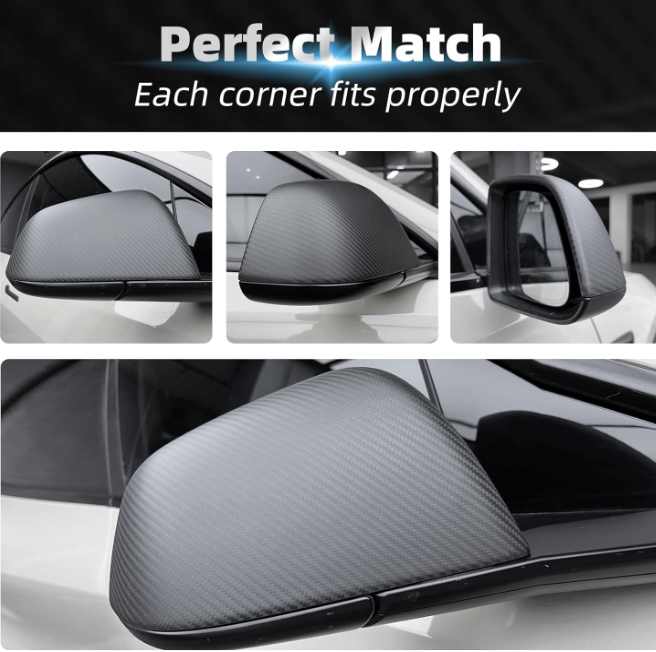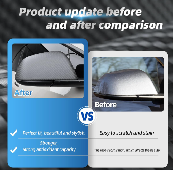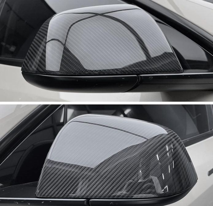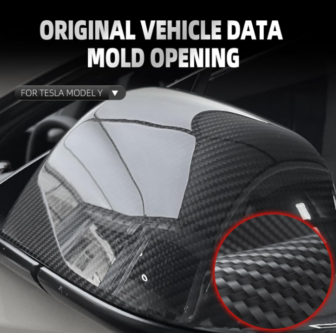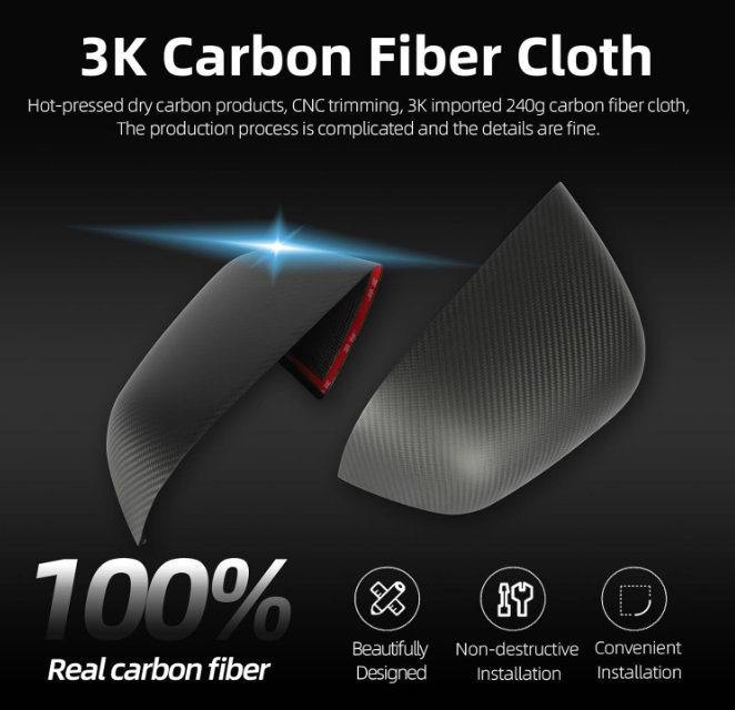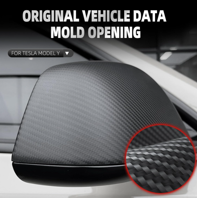【3K 碳纖維】Tesla Model Y 側鏡罩由真正的碳纖維製成,與傳統的 abs 材料完全不同,不會產生氣泡,碳纖維布圖案不會變形和扭曲,更有效的防刮,使用壽命長,低調奢華。