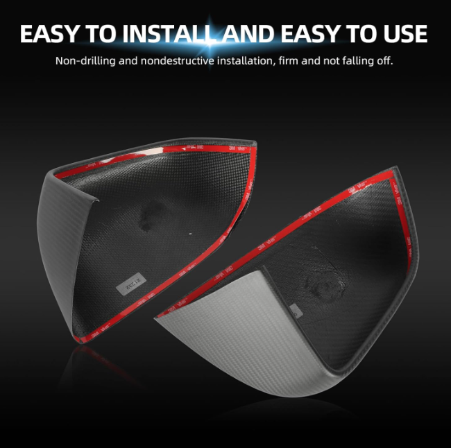 【非破壞性安裝】安裝這款 tesla Model Y 碳纖維側鏡罩無需拆卸和損壞任何原廠汽車零件,只需將其與黏性布搭配即可將其覆蓋在原始汽車上,整個安裝過程只需幾分鐘即可完成,非常簡單方便。