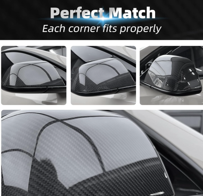 【完美搭配】Tesla Model Y 後視鏡蓋採用 1:1 模具鑄造製成,根據 Tesla Model Y 的原始資料,高標準對齊,一致的弧度,並精心拋光,避免刮漆並影響原始車輛功能,完美的配件完美您的 Tesla 。