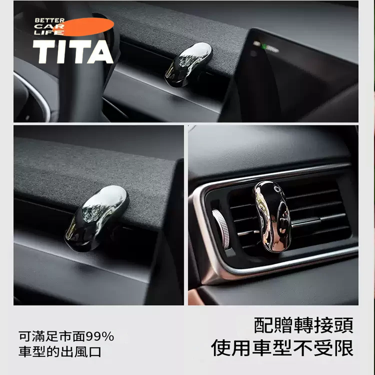 TITA車載香薰汽車出風口車內香氛持久淡香裝飾擺飾香水 讓移動的金屬軀殼成為盛裝四季的精緻器皿 ⦁國際調香師專為車內空間量身訂做⦁ 清新自然 ,久聞不膩不暈車 乘風而行為您的愛車披上清香外衣 ,充滿溫暖、療癒、放鬆、歡暢 ⦁可滿足市面99% 車型的出風口,配贈轉接頭使用車型不受限⦁ 配贈轉接頭 ,把夾子插入轉接頭中間一插即用 雙向此貼吸附一放即吸,一拉即開,磁力滿滿穩固吸附 ⦁擁有三款香型 ,可定期替換香膏⦁ ◆夏日風鈴◆ 海洋公丁香 風鈴草茉莉 鈴蘭 野玫瑰果琥珀 ◆雨與玫瑰◆ 粉紅胡椒 玫瑰樹莓薔薇琥珀 龍涎 ◆秋日終曲◆ 柑橘 薄荷 青柚雨後松針 無花果橡木苔 琥珀 苔蘚 產品參數 <適用車型 > 99%通用車型,特殊車型請諮詢客服 < 產品材質 > 合金 < 香氛數量 > 3顆 (夏日風鈴/雨與玫瑰/秋日終曲) <顏色> 秘銀與煙灰 注意事項 1. 香片維持時間會因車內的溫度及濕度的變化而變化,夏天的香味揮發速度更快是正常情況。 2. 如香片香味揮發完,可在本店購買香片補充包持續使用,車載香薰的主體容器可長期使用。 3. 香片單片擴香約30天,未開封保存期限2年。未開封的香片請儲存在陰涼、避光處,並放置於兒童、寵物無法觸及的地方。 使用說明 1. 打開車載香薰主體的磁吸頂蓋。 2. 香片位於包裝內的獨立香氛盒中,打開盒子,即可獲得三片不同香味的補充香片。選取喜歡的香片取出備用,其他香片請放置陰涼處保存,防止香味揮發。 3. 將香片取出,放置進車載香薰的凹槽內,調整好方向蓋上磁吸蓋, 並將其放置在出風口處,根據自身需求稍作位置和高低調節,確保香薰主體固定穩固後,即安裝成功。 4. 如需更換香錠,請重複以上步驟即可。